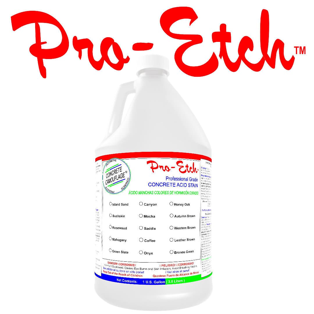 Pro-Etch Professional Grade 2 coat acid stain Covers up to 200 sq.ft. per gallon Available in 15 colors Choose from 4 sizes. |