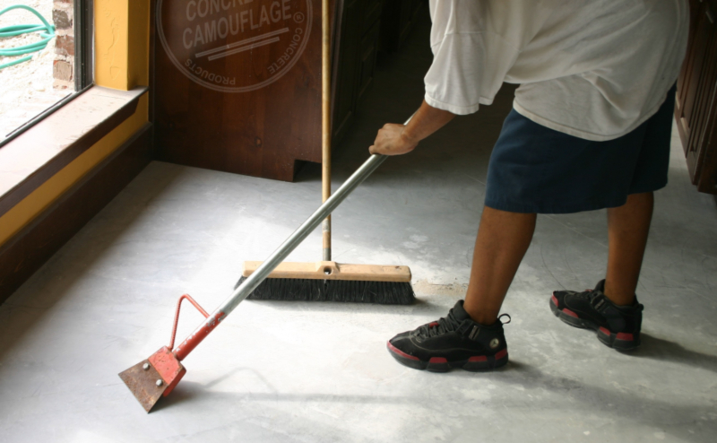 Many times it is possible to remove all the concrete glue from the surface with this step alone. If that isn't the case, then you will need to sweep away the glue chunks that you were able to lodge loose and move onto step 2.