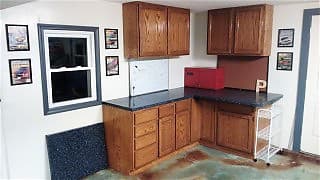 One of the firts things you'll need to do is make sure the garage is safe. Keep a fire extinguisher nearby, install smoke and carbon monoxide alarms, and ensure you have several lockable cabinets so you can protect children and pets from toxic chemicals and sharp tools.